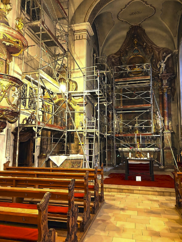 Januar 2026: Gerüste in der Kirche - Erhebung des Sanierungsbedarfes